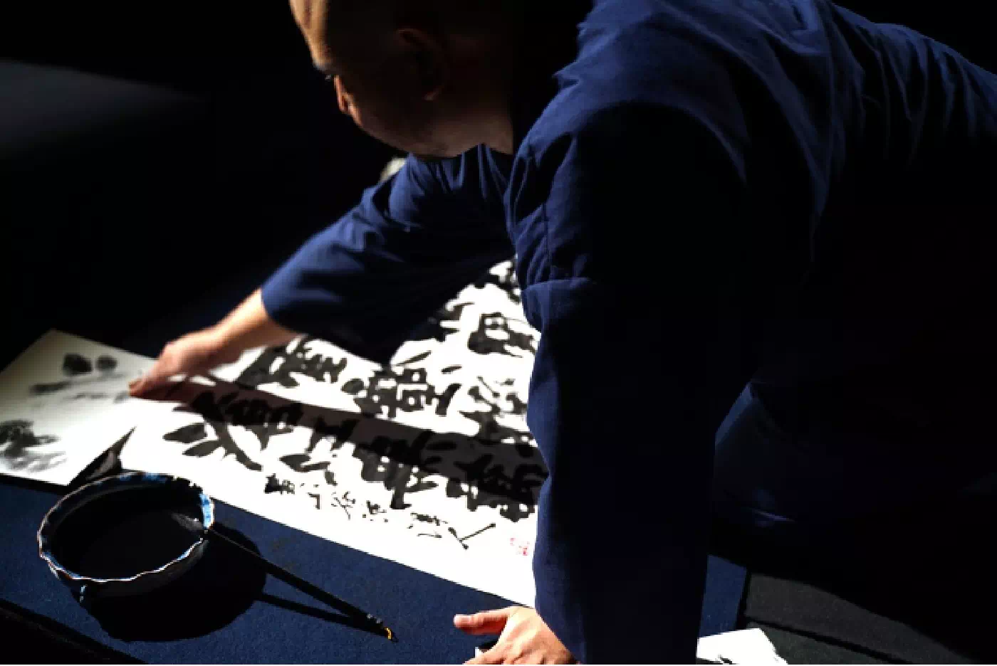 幸喜さんの体幹を軸にした筆さばきは豪快です