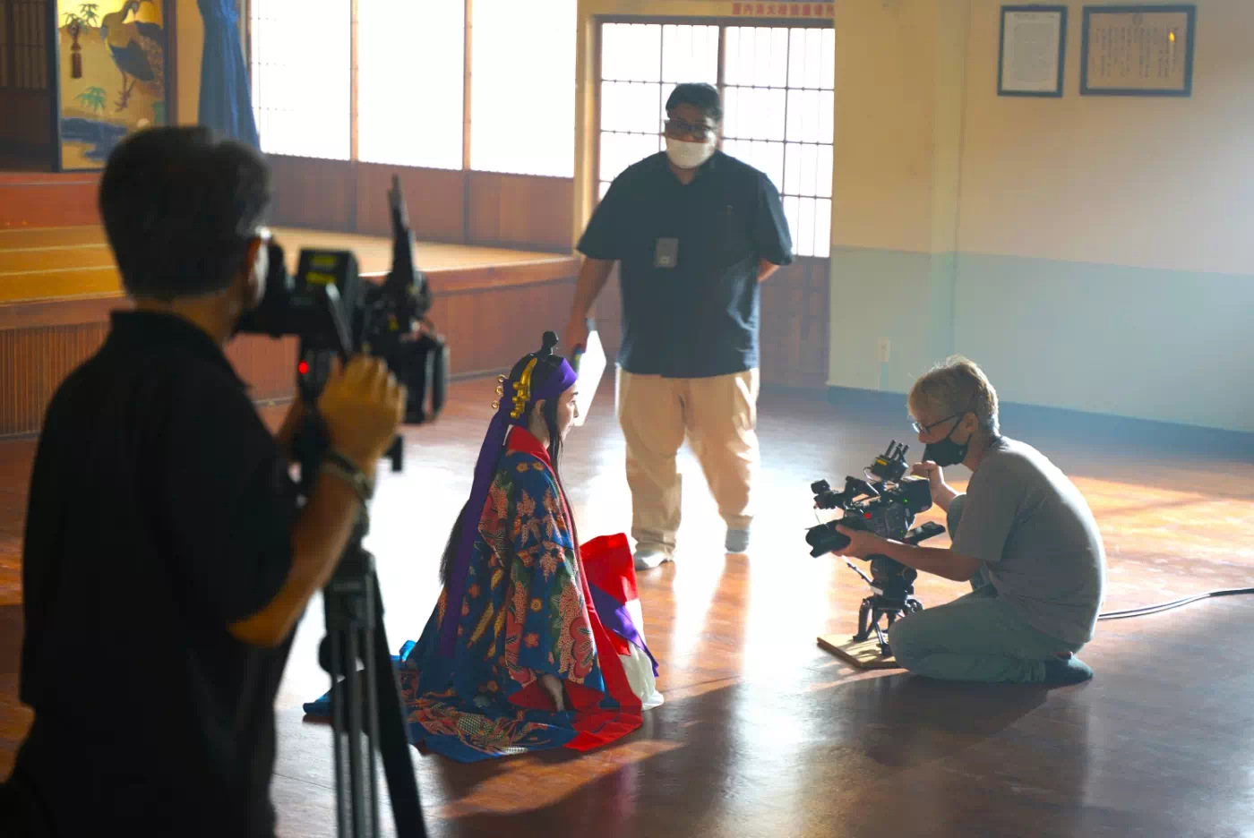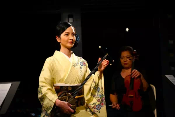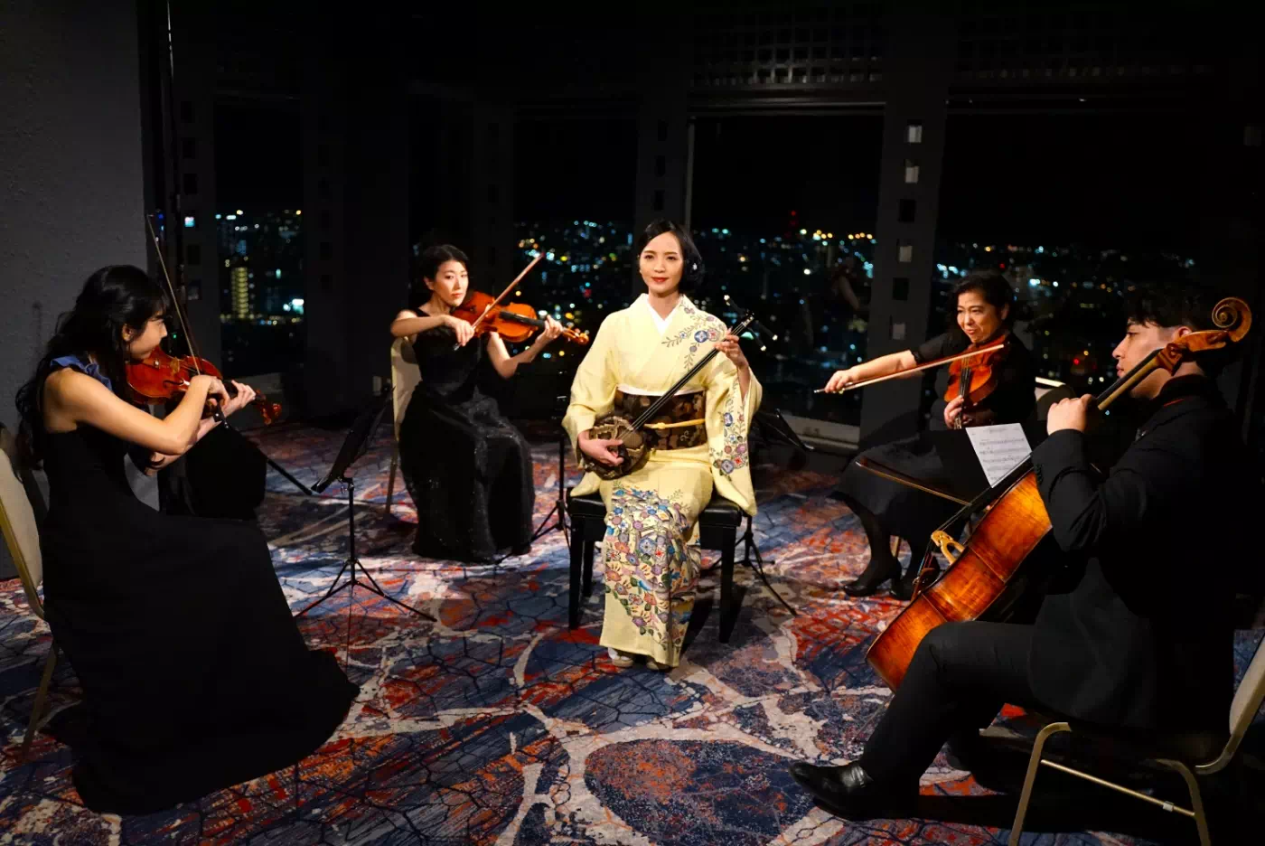 城間栄順作紅型の落ち着いた華やかさで席に着くと