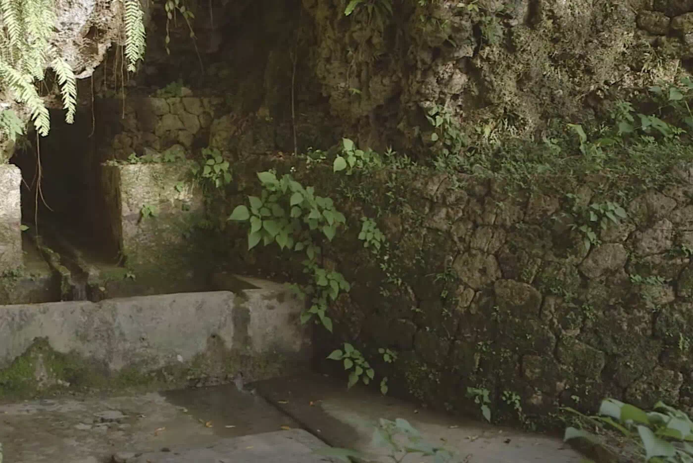 さくの川は、急な崖の下から湧き出る地下水を、導き出した共同井戸です。
