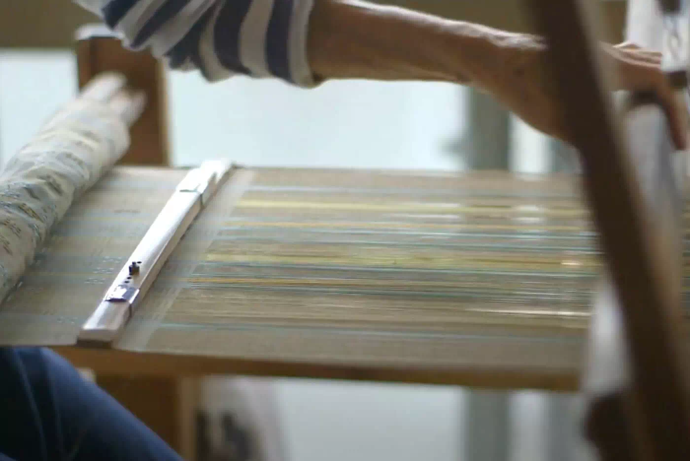 伊藤さんの作品もまずは糸から。他の多くの工芸会の作家のように、群馬から糸を取り寄せ、ご自身で染め出します。