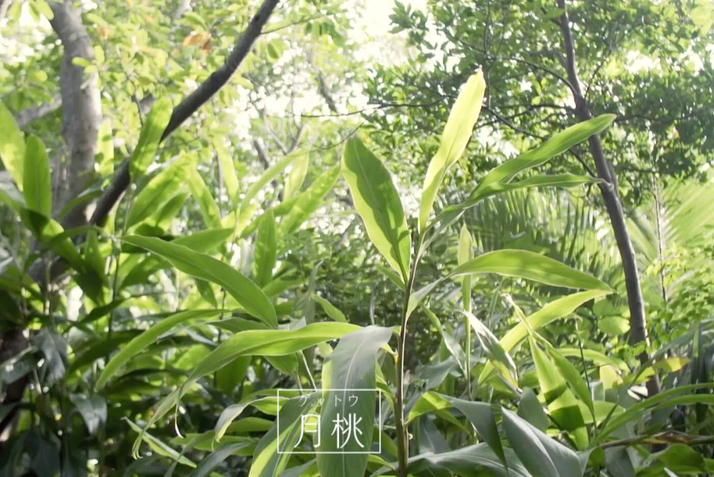 こはでさ(和名 コバテイシ)の上に出た月は、葉の間のわずかな隙間しか照らしません。