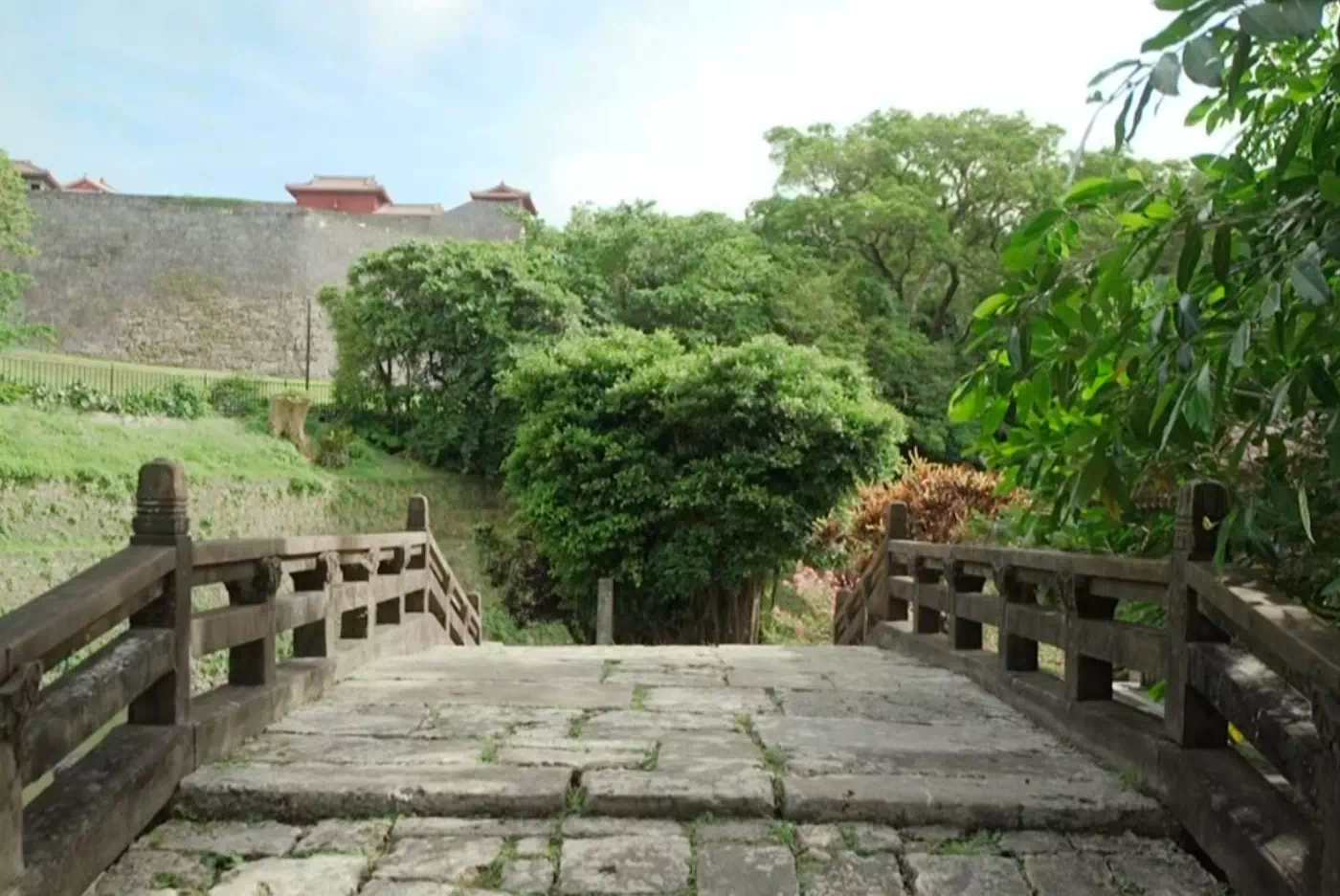 はるか遠くに見える山も嶽も海もつらなりつらなって首里王城のお庭のような眺めだ